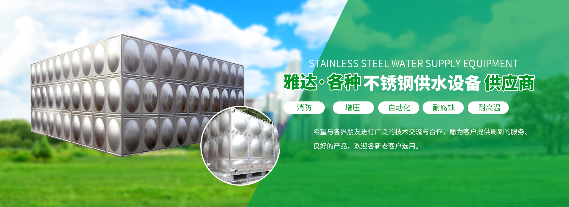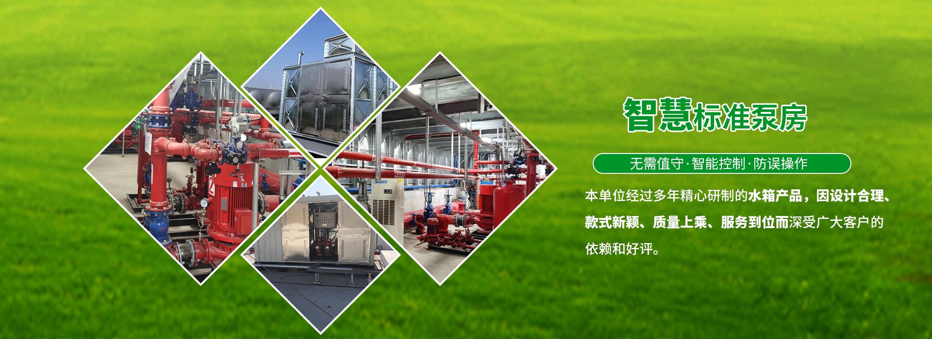 我公司擁有十多種產(chǎn)品,主要包括:不銹鋼水箱、大模塊裝配式水箱、智慧標(biāo)準(zhǔn)泵房、生活供水設(shè)備、消防箱泵一體化設(shè)備、消防穩(wěn)壓設(shè)備、不銹鋼隔油池、污水提升預(yù)制泵站、水箱消毒器、氣壓罐等。